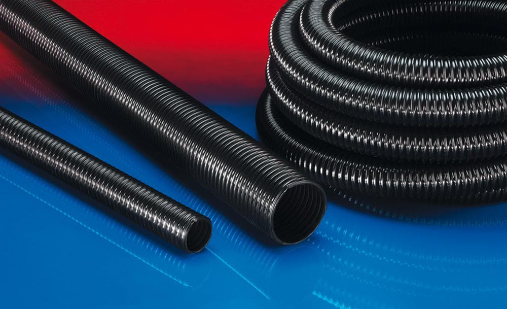 Eigenschaften:superschwere Ausführung · extrem abriebfest durch gezielte Verstärkung unter dem Draht und kleine Schlauchsteigung · sehr hohe Druck-, Vakuum- und Scheiteldruckfestigkeit · gute Öl-, Benzin- und Chemikalienbeständigkeit · sehr gute Kälteflexibilität · Wandung elektrisch leitfähig: Durchgangswiderstand und Oberflächenwiderstand <10³ Ω · gemäß TRGS 727 und ATEX 2014/34/EU: zum pneumatischen Transport brennbarer Stäube und Schüttgüter (Zone 20, 21, 22 im Inneren), zur Aspiration brennbarer Stäube (Zone 22 im Inneren), zum Fördern für brennbare Flüssigkeiten (innen Zone 0, 1, 2), zum Fördern für nicht brennbare Flüssigkeiten, zum Einsatz in Zone 1 und 2 (Gase), zum Einsatz in Zone 0 (Gase) · gemäß DIN 26057 Typ 4 · RoHS konform
