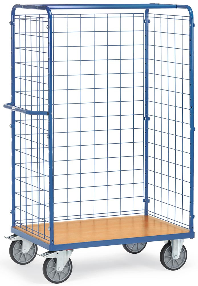 Paketwagen, 3 Gitterwände, Ladefläche LxB 1000x600 mm, Außenmaße LxBxH 1169x609x1800 mm, Traglast 600 kg, RAL 5007 brillantblau E6041070