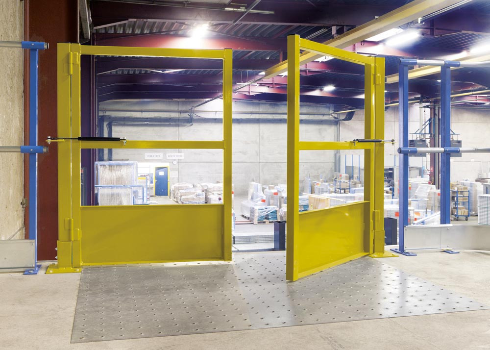 Paletten-Tür, 2flgl., mit Gasdruckfeder, selbstschließend, Breite: 2000 mm, Höhe 1100 mm, Farbe RAL 1028 melonengelb
