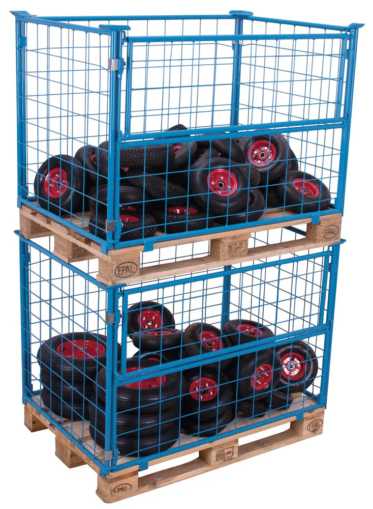 ∙ Stapelbar ∙ Für die optimale Nutzung der Palettenoberfläche ∙ Schnell montiert und bei Nichtgebrauch platzsparend gelagert ∙ Stabile Stahlkonstruktion mit senkrechten Streben aus geschweißtem Stahl für höchste Beanspruchungen ∙ Farbe RAL 5012 lichtblau · Auf Anfrage auch in RAL 7016 anthrazitgrau lieferbar
