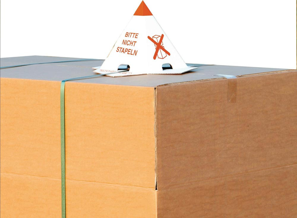 · durch zusätzliche Schlitze auch mit Umreifungsband zu befestigen · Anlieferung erfolgt flach zusammengelegt
