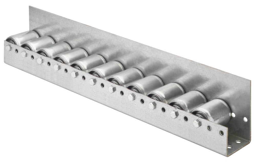 ∙ Verschiedene robuste Profile aus verzinktem 3 mm Stahlblech ∙ Hohe Durchbiegungs- und Torsionsfestigkeit ∙ Verschiedene Rollenausführungen mit einer Traglast von 160 kg ∙ Wartungsfreie Kugellager mit langer Lebensdauer ∙ Paletten können wahlweise quer oder längs zu ihren Kufen befördert werden ∙ Für den Quertransport ist eine Rollenteilung von