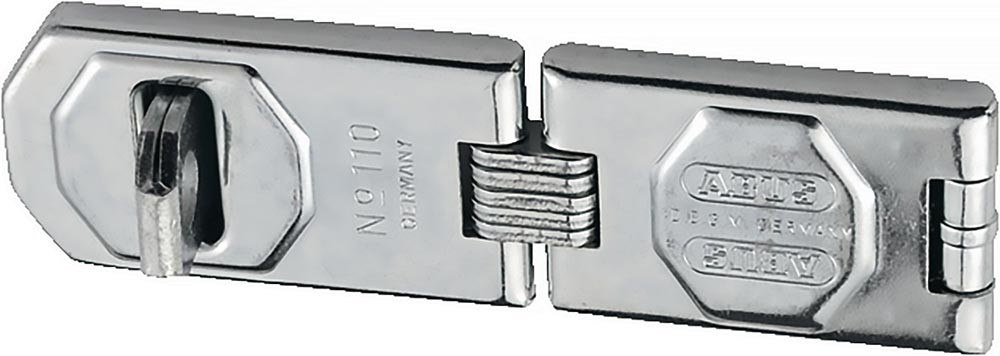 Gelenküberfalle für Ecklösungen z. B. Kisten, Schränke · geeignet für "aufschlagende" Türen, d.h. Türblatt und Türrahmen liegen nicht auf einer Ebene · zur Verwendung mit einem Vorhangschloss · gehärtete Stahlöse · Schrauben liegen nach der Montage verdeckt, die Gelenkstifte sind gegen Heraustreiben geschützt