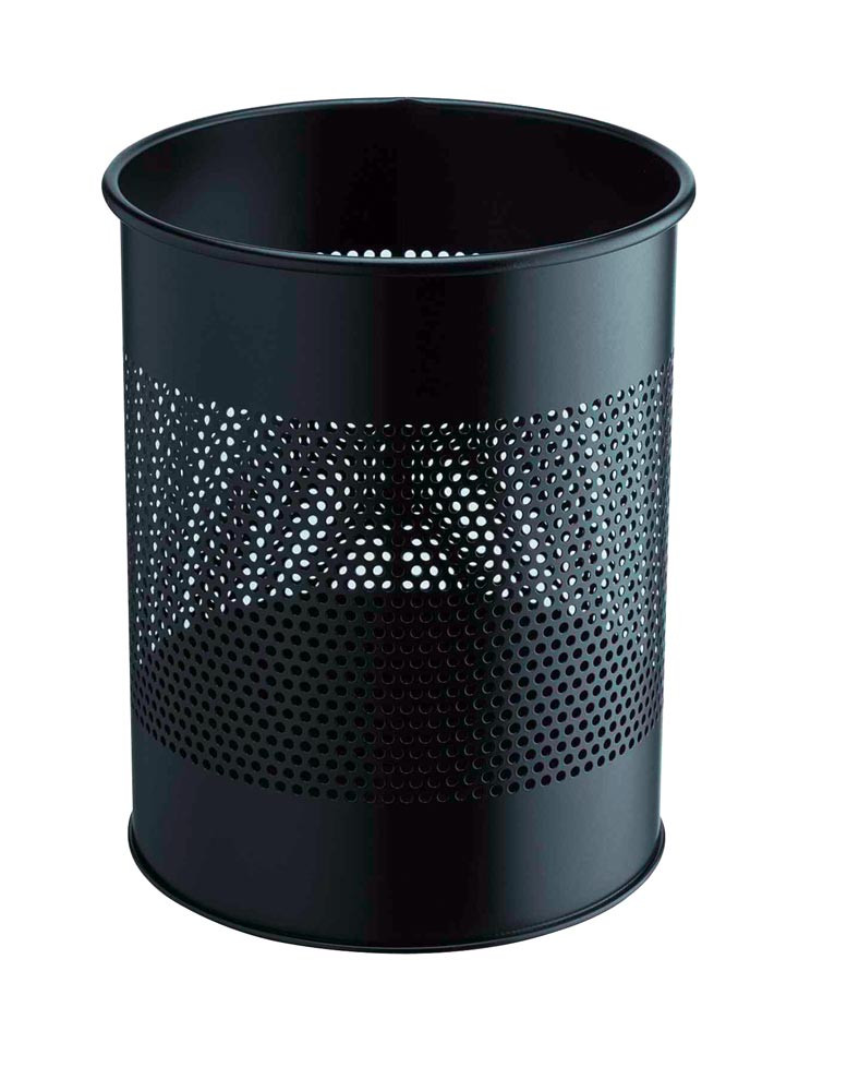 Papierkorb, Stahl gelocht, rund, Volumen 15 l, Durchm.xH 260x315 mm, schwarz