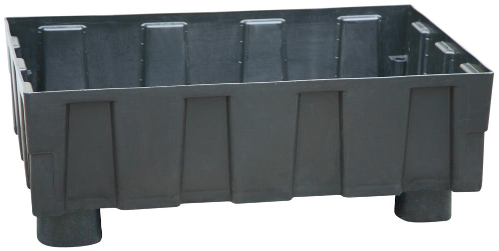 Polyethylen-Auffangwanne, mit 4 Sockelfüßen, ohne Gitterrost, BxTxH 1205x805x430 mm, Vol. 250 l E813155