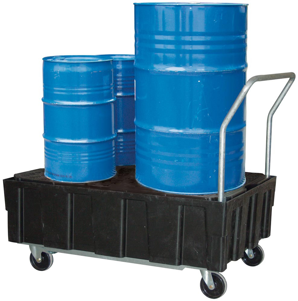 Polyethylen-Auffangwanne mit 2 Lenk- und 2 Bockrollen, mit PE-Lochblech, BxTxH 1290x805x1040 mm, Vol. 224 l E813167