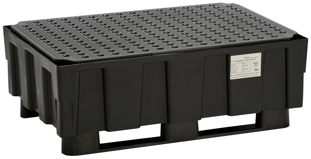 Polyethylen-Auffangwanne mit Kufen, mit PE-Lochblech, BxTxH 1205x805x440 mm, Vol. 224 l E813162