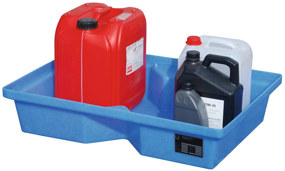 ∙ Aus Polyethylen (PE) ∙ Beständig gegen Säuren, laugen und Öle sowie weitere nicht entzündliche Medien ∙ Farbe blau ∙ Wannen passen genau auf Euro- Chemiepaletten ∙ Ohne Lochrost (als Zubehör erhältlich)