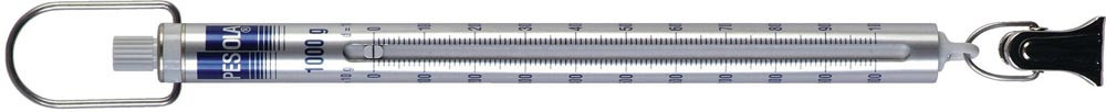 metrisch · genaue handliche Federwaage mit robustem, eloxiertem und abriebfreiem Aluminiumrohr sowie langer Präzisionsskala mit hoher Auflösung · Tara- und Nullstellvorrichtung sowie dreh- und schwenkbarer Aufhängebügel · untere Aufhängung dreh- und schwenkbar, sowie durch verschiedenes Zubehör leicht austauschbar · Messmittel zur Gewichtsbestimmung und Zugkraftmessung