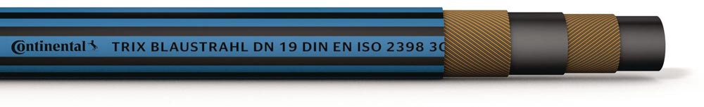 Kennzeichnung: 6 blaue, axial verlaufende Streifen auf schwarzem Untergrund "Continental TRIX BLAUSTRAHL DN 19 DIN EN ISO 2398 3C / L-T LUFT/AIR 2,5 MPa (25 BAR / 363 PSI) Ω-CL Ölkanne "Made in Germany"