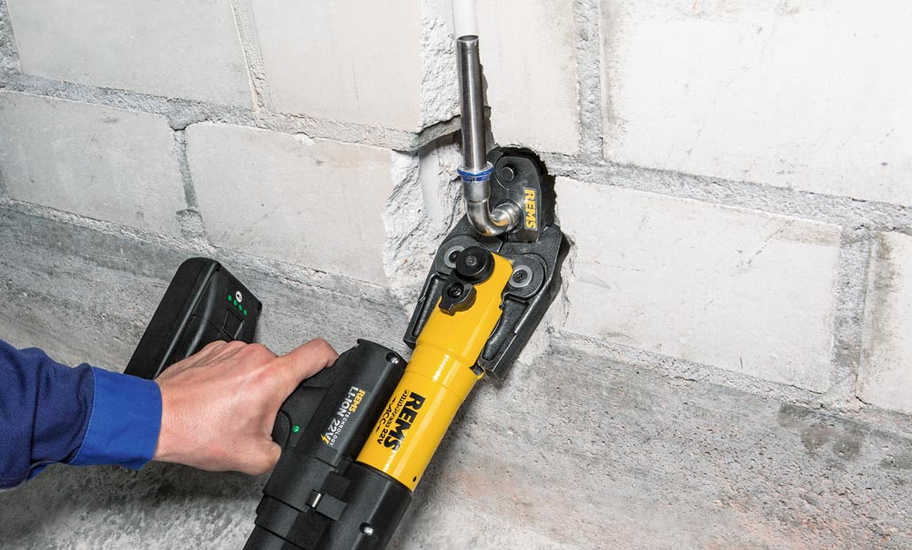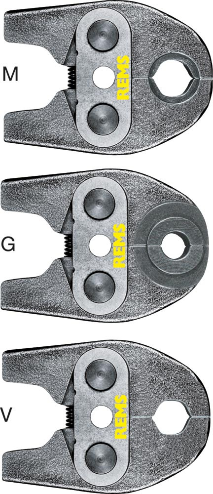 Ausführung: Hochbelastbare Presszangen aus geschmiedetem und gehärtetem Spezialstahl ∙ Die Presskonturen der Zangen sind systemspezifisch und entsprechen den Presskonturen der jeweiligen Pressfittings-Systeme ∙ Dadurch einwandfreies systemkonformes und sicheres Pressen