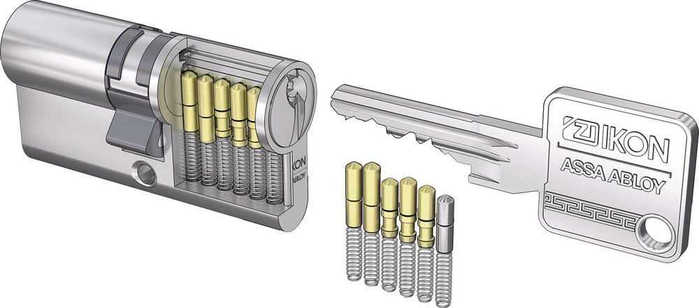6 gefederte Stiftzuhaltungen = Nachschließsicherheit