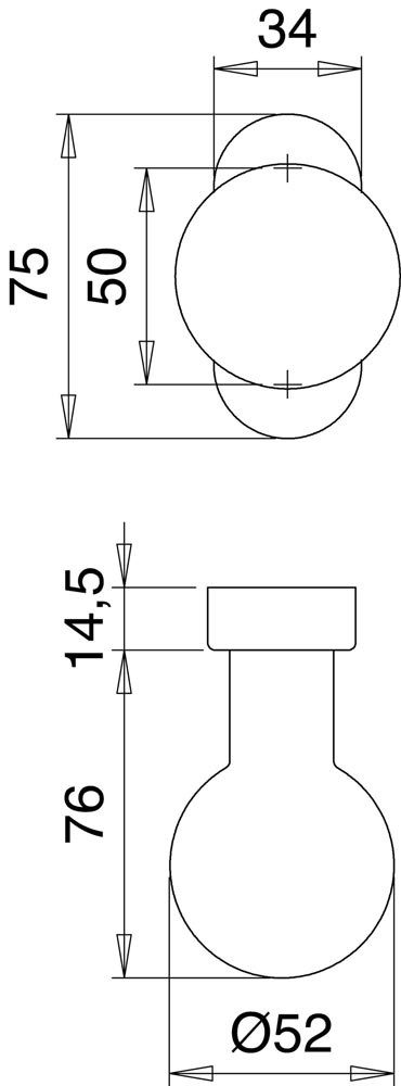 für Rahmentüren · gerade, auf ovaler Rosette · mit unsichtbarer Befestigung · Höhe 75 mm · Breite 34 mm · Stärke 14,5 mm · Schraublochabstand 50 mm · fest oder fest/drehbar (federnd gelagert) · DIN links / rechts · Lieferung ohne Stift und Schrauben