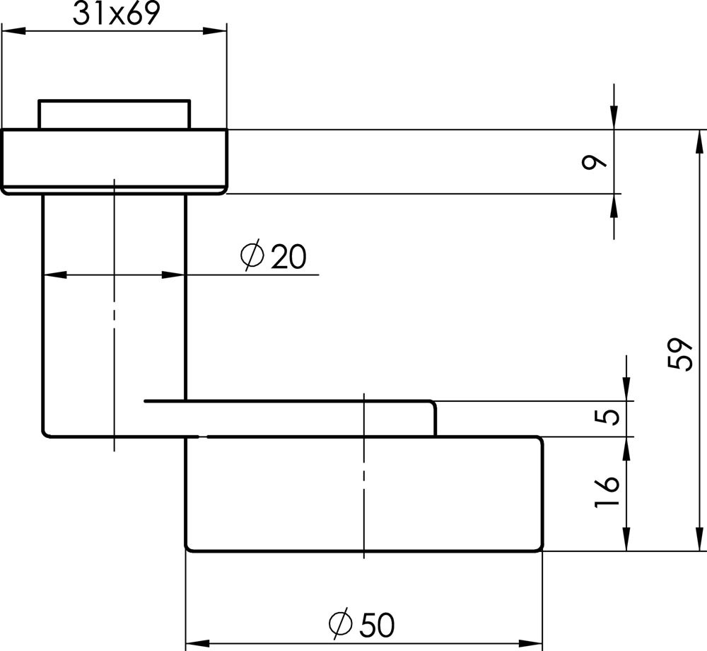feststehender, runder Flachknopf 3020 · gekröpft, fest auf ovaler Profiltür-Rosette 6620