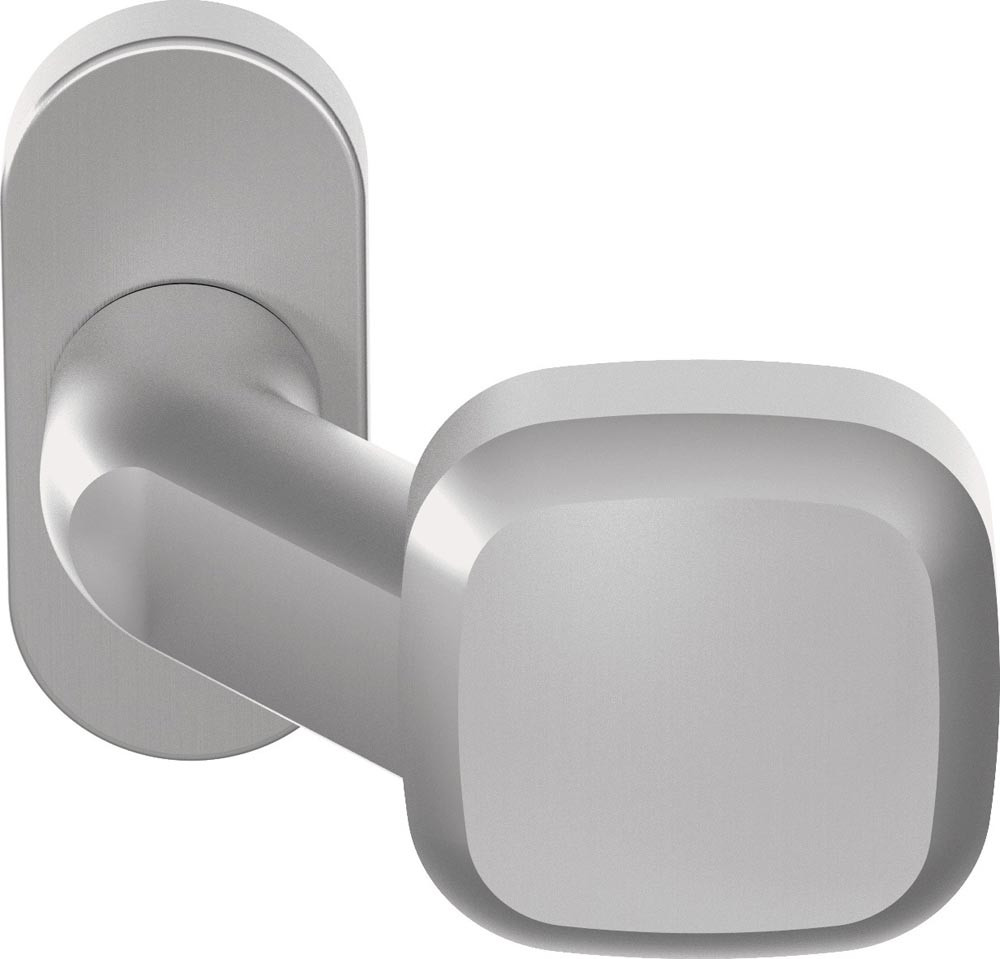 feststehender, viereckiger (abgerundete Ecken) Linsenknopf 3030 · schräg, fest auf rechteckiger XEA-Profiltür-Rosette 6610 · DIN links / rechts · OGRO-Baukastensystem