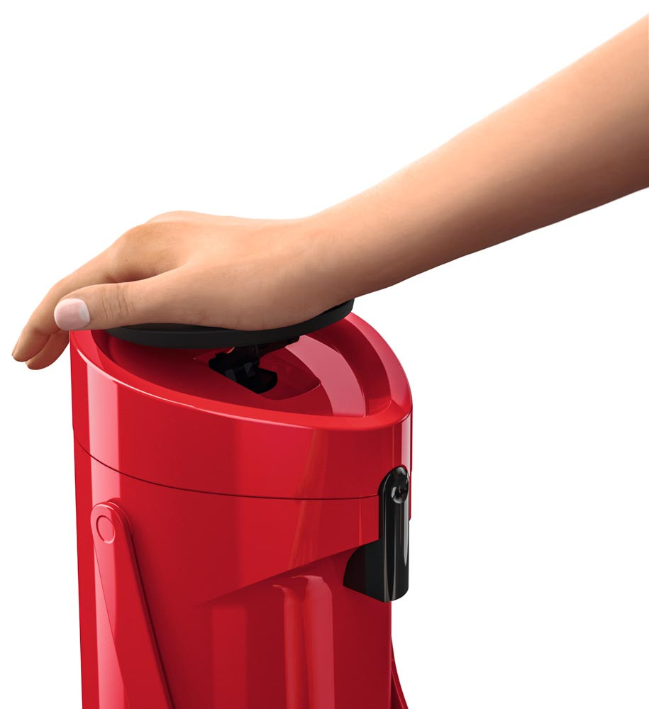 · Kunststoff-Gehäuse · Doppelwandiger Glas-Isolierkolben für 12 h heiße oder 24 h kalte Getränke · Hohe Pump-Leistung dank Komfort-Press-Pumpmechanismus mit breitem Druckknopf · Pump-Kopf komplett abnehmbar · Abnehmbare Tropfschale · Integrierter Tragegriff · Drehbarer Fuß zum problemlosen Schwenken · Leichtes Befüllen und einfache Reinigung per Hand