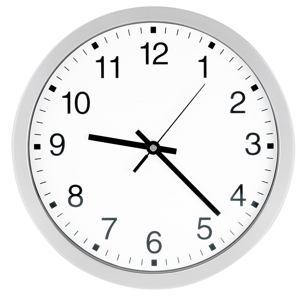 Quarz-Wanduhr, Durchm. 300 mm, Kunststoffgehäuse silber, Ziffernblatt weiß, arabische Ziffern, inkl. Batterie