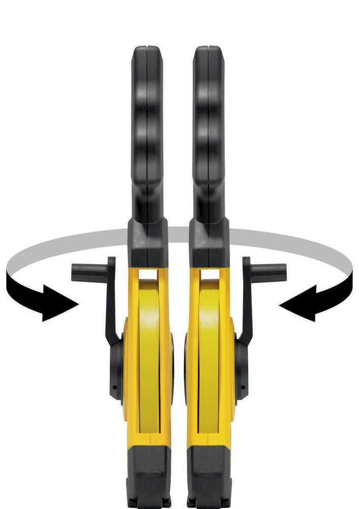 Y-Rahmen · Stahlband mit metrischer Skala · einfacher Wechsel der Kurbel von Rechts- auf Linkshänderbetrieb · ergonomischer Softgrip-Handgriff · extrem widerstandsfähige Ummantelung schützt das Band vor Korrosion und Abrieb · Universalhaken: variable Befestigungsmöglichkeiten dank ausklappbarem SPIKES-Haken - für sicheren Halt beim Ziehen des Bandes · integrierte Nagel-Öse im Haken · Kunststoffring: einfaches Hinzurechnen zur gemessenen Länge - 2 cm zwischen Nullpunkt und Nagelkerbe, 5 cm zwischen Nullpunkt und Ringanfang · Nullpunkt ist am Anfang des Bandbeschlages · Gehäuse aus PC/ABS-Kunststoff · EG-Genauigkeitsklasse II