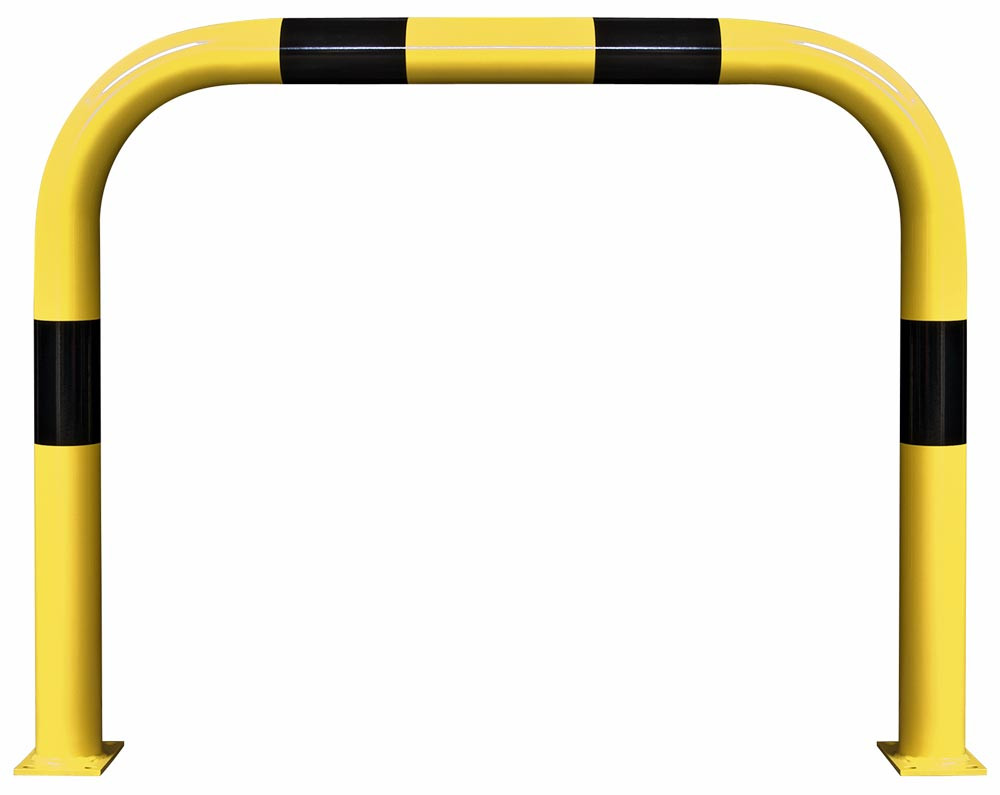 Rammschutz-Bügel XL, Rundrohr 108/3,6 mm, gebogen, BxH 1500x1200 mm, Innenbereich, gelb beschichtet, mit schwarzen Streifen, zum Aufdübeln