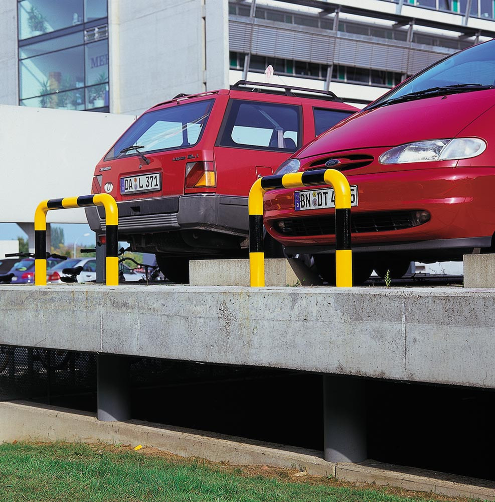 ∙ Rohrdurchmesser 76,0 mm ∙ Wandstärke 3 mm ∙ Hochbelastbare Schutzbügel aus Gütestahl ∙ Einfache Montage durch Aufdübeln (Montagematerial bitte separat mitbestellen), auf Anfrage auch zum Einbetonieren lieferbar