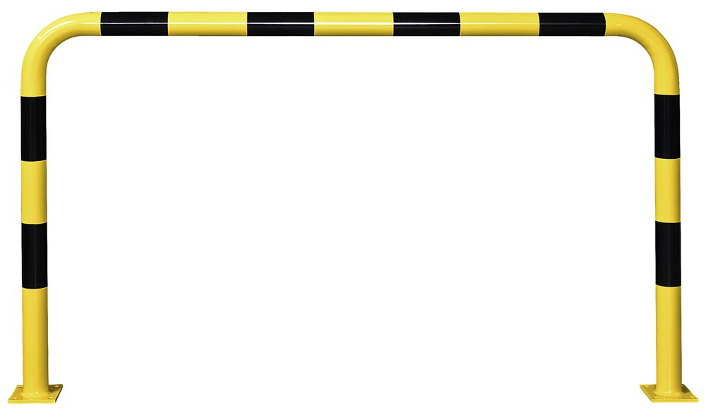 Rammschutz-Bügel für den Inneneinsatz, grundiert und gelb kunststoffbeschichtet, mit schwarzen Signalstreifen, BxH 2000x1200 mm