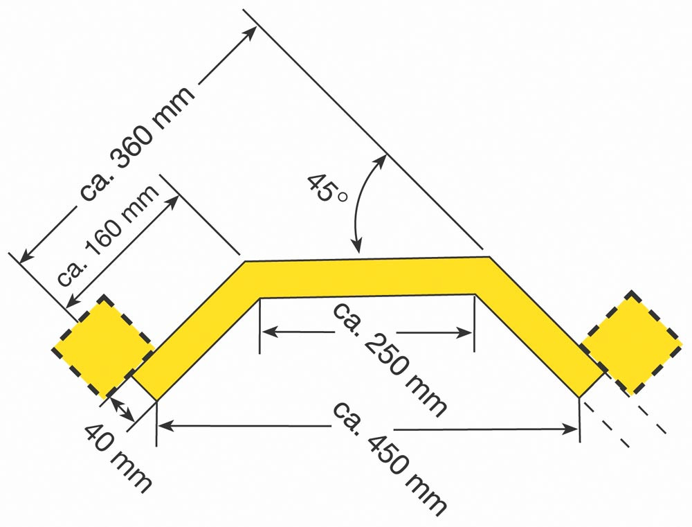 Rammschutz-Planke, Eckplanken-Innen-C-Profil, 100x40x3 mm, feuerverzinkt und gelb kunststoffbeschichtet, Außenbereich, Länge 556 mm E1427365