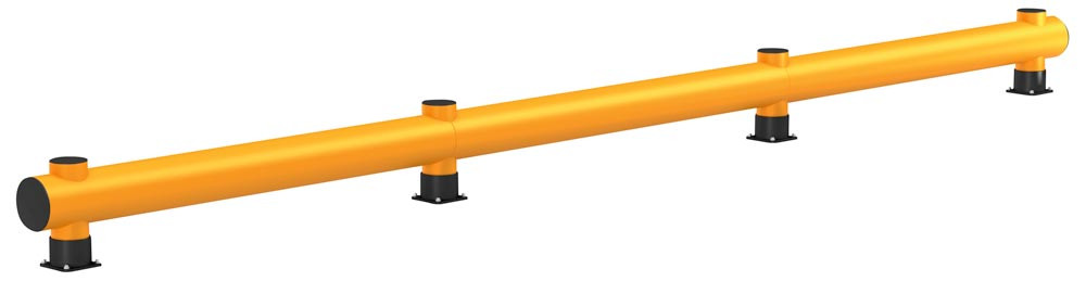 Rammschutzbarriere, Einzelplanke, HDPE, Länge 8000 mm, Höhe 390 mm, Pollerdurchm. 140 mm, Verbindungsrohrdurchm. 200 mm, Farbe gelb