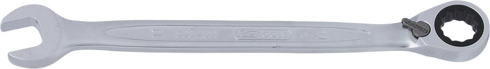 Ausführung: Nach DIN 3113/ISO 3318 ∙ Aus Chrom-Vanadium-Stahl, sehr fein satiniert ∙ Ringköpfe 15° gekröpft ∙Maulstellung 15° ∙ Mit Umschalthebel ∙ Schlüsselweite Flank Traction-Profil