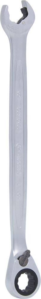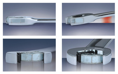 Ausführung: Aus Chrom-Vanadium-Stahl, sehr fein satiniert ∙ Professioneller Ratschenmechanismus "FlankTraction-Profil" ähnl. DIN 3113/ISO 3318 mit exakt Verzahnung mit 72 Zähnen ∙ Rechts-/Links-Umschaltung ∙ Rngseite 15° abgewinkelt ∙ Maulstellung zusätzlich mit Ratschenfunktion 15° abgewinkelt