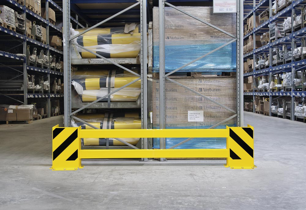 Regalschutz-Planken-Set, für Einfachregalreihe, Innenbereich, einstellbar von 900-1300 mm, beschichtet in gelb, mit schwarzen Streifen E1979391