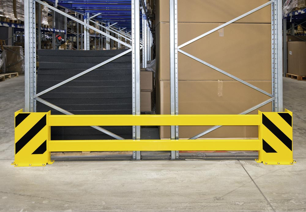 Regalschutz-Planken-Set, für Einfachregalreihe, Innenbereich, einstellbar von 900-1300 mm, beschichtet in gelb, mit schwarzen Streifen E1979391