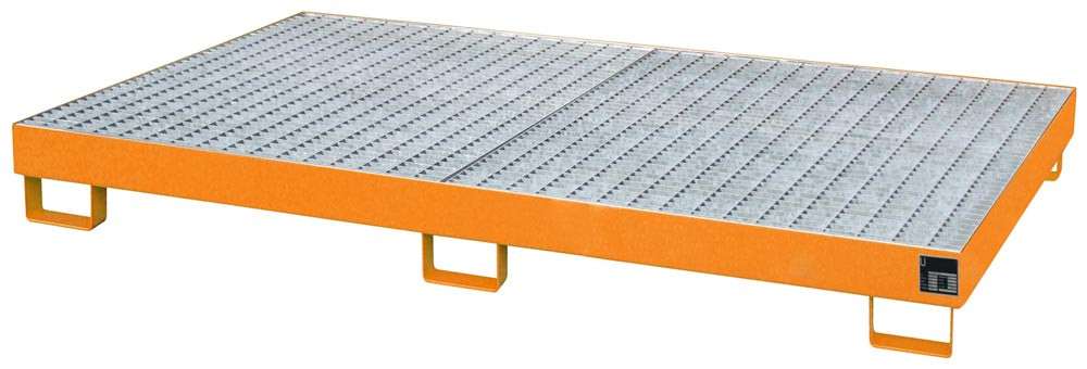 Regalwanne f. Trägerlänge 2200 mm, m. verz. Gitterrost, BxTxH 2150x1300x225 mm, Volumen 240 l, RAL 2000 E1987195