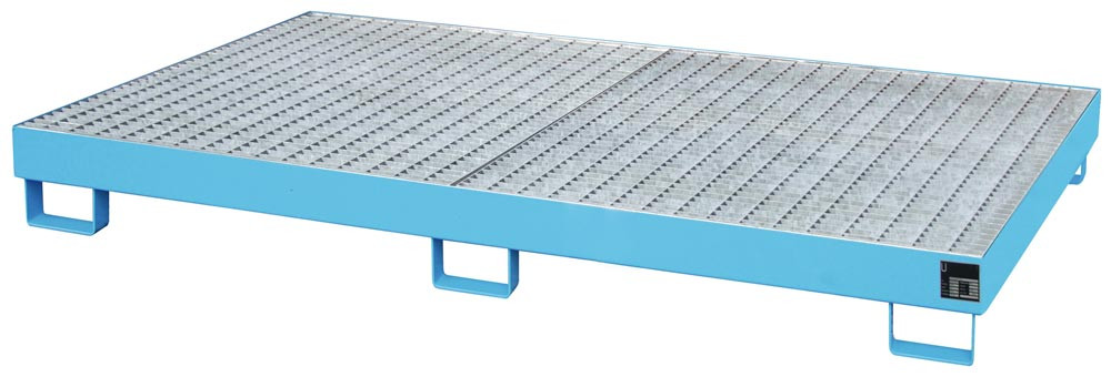 Regalwanne f. Trägerlänge 1800 mm, m. verz. Gitterrost, BxTxH 1750x1300x250 mm, Volumen 240 l, RAL 5012 E1987193