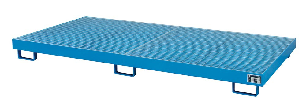 Regalwanne f. Trägerlänge 2200 mm, m. verz. Gitterrost, BxTxH 2150x1300x225 mm, Volumen 240 l, RAL 5012 E1987196
