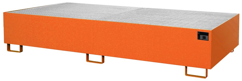 Regalwanne f. Trägerlänge 2700 mm, m. verz. Gitterrost, BxTxH 2650x1300x435 mm, Volumen 1000 l, RAL 2000