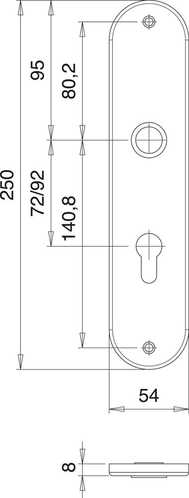 Edelstahl · oval · sichtbare Verschraubung · Breite 54 mm · Länge 250 mm