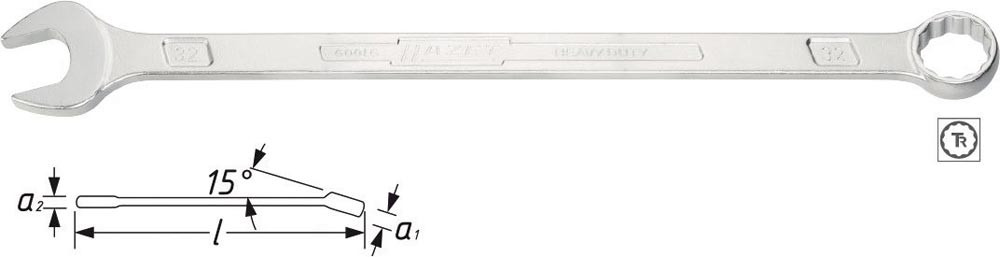 Ringmaulschlüssel 600 LG SW 12 mm Länge 230 mm extra lang CV-Stahl E6447046