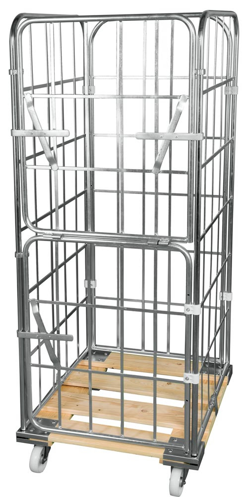 Rollbox, 4-seitig (halb abklappbare Vorderwand), Nutzhöhe 1650 mm, LxBxH 810x720x1850 mm, Bodenplatte aus Holz, natur