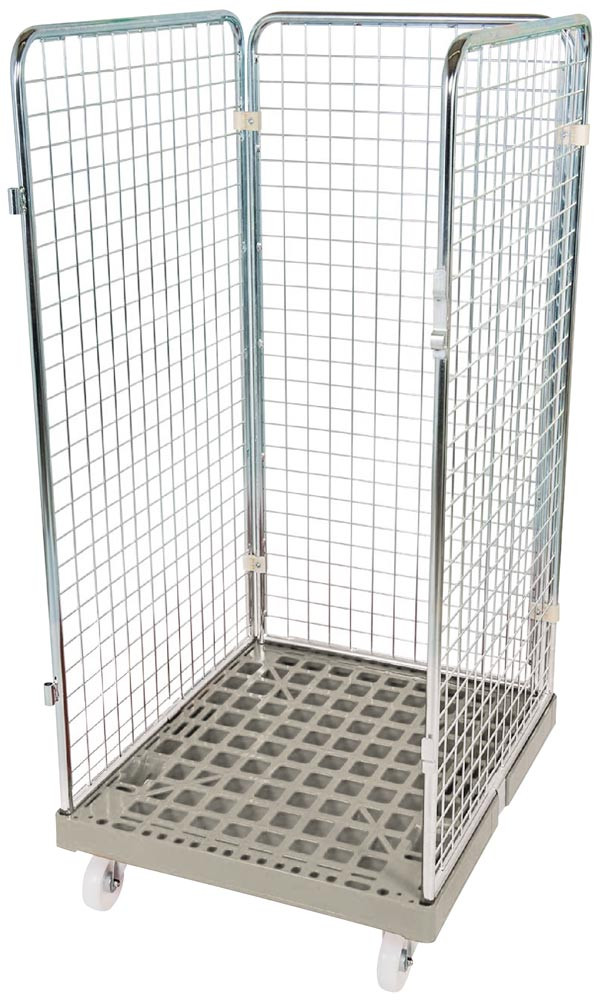 Rollbox mit Drahtgitterwänden, 3-seitig, Nutzhöhe 1020 mm, LxBxH 810x720x1200 mm, Bodenplatte aus HDPE, RAL 7032 kieselgrau E1993094