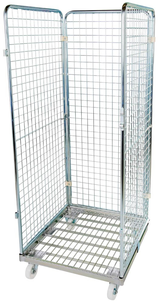 Rollbox mit Drahtgitterwänden, 3-seitig, Nutzhöhe 1585 mm, LxBxH 810x720x1800 mm, Bodenplatte aus Stahl, verzinkt