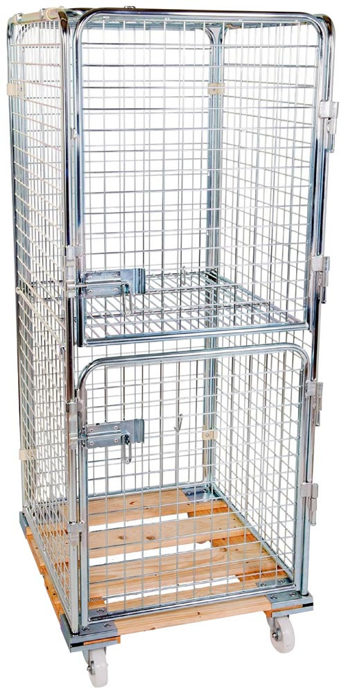 Rollbox mit Drahtgitterwänden, 5-seitig (2 Türen), 1 Boden, Nutzhöhe 1585 mm, LxBxH 810x720x1800 mm, Bodenplatte aus Holz, natur
