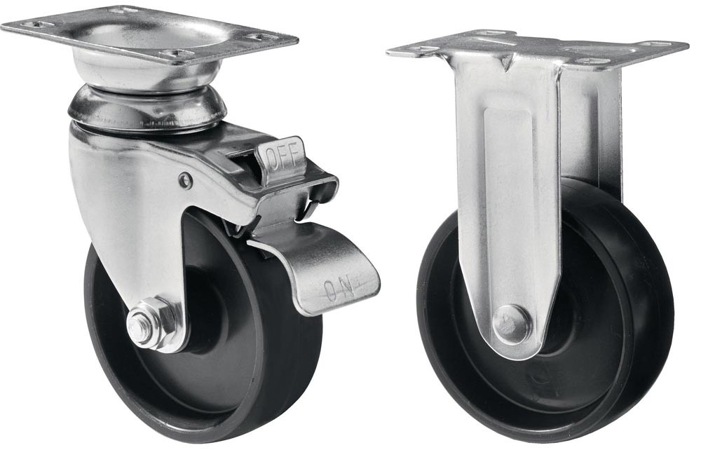 4 Rollen, 2x fix + 2x schwenkbare Rollen