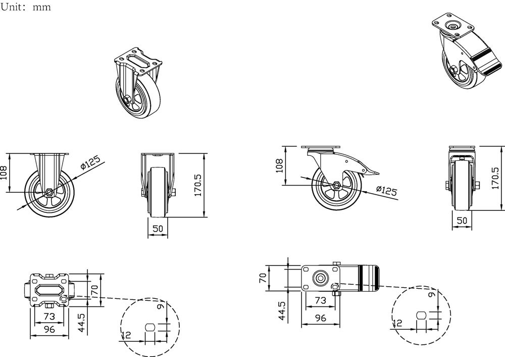 | Ausführung | 4 Rollen schwenkbar |