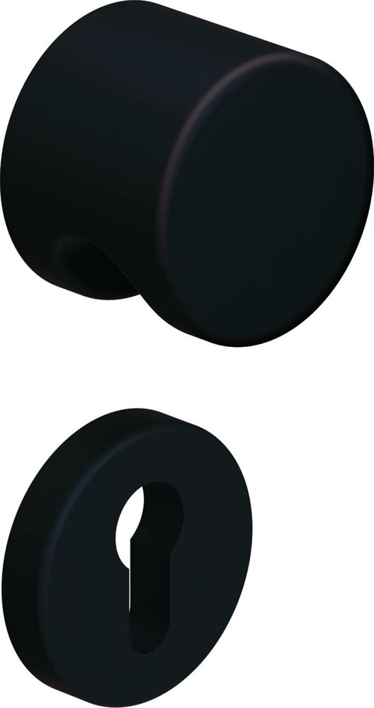 in R-Technik nach DIN 18255 und DIN EN 1906 aus mattem Polyamid, bestehend aus: Knopf 122.23PB und Türdrücker 111.23PBR, Durchmesser 23 mm und Rundrosetten 305.23PBR und 306.23PB · der Drücker erfüllt die Vorgaben der DIN EN 179 und der DIN 18040 · Gebrauchskategorie: Klasse 2 mit Vierkantstift 7 mm · Gebrauchskategorie: Klasse 4 mit Vierkantstift 8 - 8,5 mm · Ausführungsvorschlag! Bitte alle Maße und baulichen Gegebenheiten im Auftragsfall prüfen!