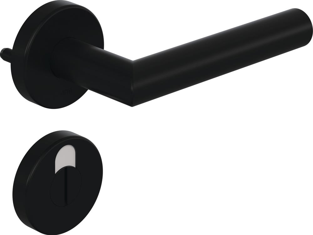 Frei-Besetzt-Garnitur · in R-Technik nach DIN 18255 und DIN EN 1906 aus mattem Polyamid, bestehend aus: Türdrücker 162.21PBR, Durchmesser 21,3 mm und Rundrosetten 305.21PBR und 306.23PBNR · WC-Ausführung mit Notöffnung mittels Vierkantdorn oder Münze und Schauscheibe (Anzeige rot/weiß) auf der Außenseite · Gebrauchskategorie: Klasse 4 mit Vierkantstift 8 - 8,5 mm · Ausführungsvorschlag! Bitte alle Maße und baulichen Gegebenheiten im Auftragsfall prüfen!
