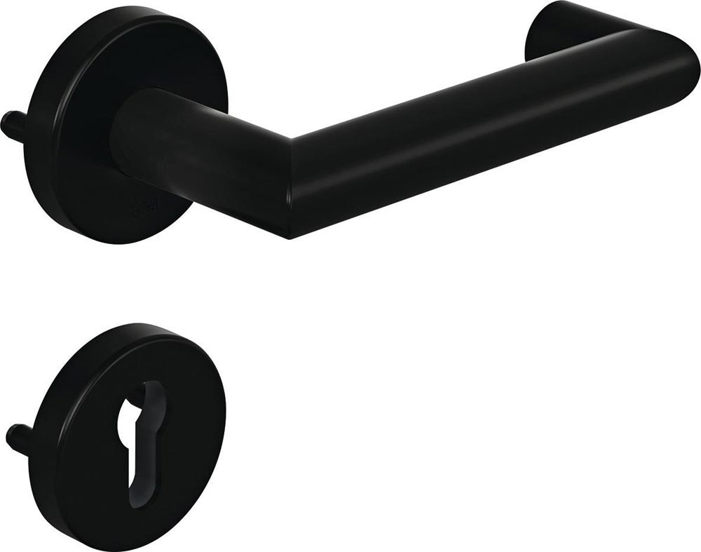 in R-Technik nach DIN 18255 und DIN EN 1906 · aus mattem Polyamid · bestehend aus: Knopf 123.23PBR und Türdrücker 165.21PBR, Durchmesser 21,3 mm und Rundrosetten 305.21PBR und 306.23PB · der Drücker erfüllt die Vorgaben der DIN EN 179 · Gebrauchskategorie: Klasse 4 mit Vierkantstift 8 - 8,5 mm · Ausführungsvorschlag! Bitte alle Maße und baulichen Gegebenheiten im Auftragsfall prüfen!