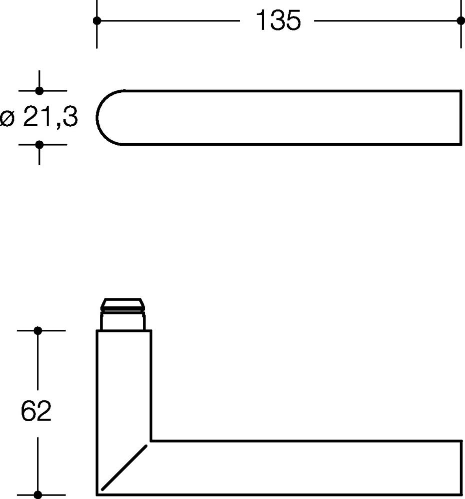 Frei-Besetzt-Garnitur, barrierefrei · in H-Technik nach DIN 18255 und DIN EN 1906 aus Edelstahl, Oberfläche matt geschliffen, bestehend aus: Türdrücker 162XAH, Durchmesser 21,3 mm, Rundrosetten 305.21XAH und 306.23XANB · WC-Ausführung mit Notöffnung mittels Vierkantdorn oder Münze und Schauscheibe (Anzeige rot/weiß) auf der Außenseite · Betätigungsriegel in asymmetrischer - verlängerter Ausführung, mit integriertem Hochhaltemodul mit Federunterstützung · Gebrauchskategorie: Klasse 4 Garnitur mit Vierkantstift 8 - 8,5 mm · Ausführungsvorschlag! Bitte alle Maße und baulichen Gegebenheiten im Auftragsfall prüfen!
