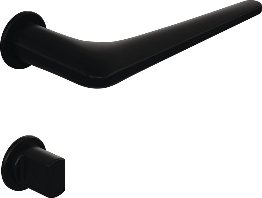 Frei-Besetzt-Garnitur · mit flacher Drückerrosette, Abdeck-Kappe aus mattem Polyamid, Türdrücker Modell 251.21PBM in Gehrungsform aus mattem Polyamid mit durchgehendem Stahlkern, Vierkantstift 8 mm, für Österreich 8,5 mm, mit Trapezgewinde · Fixierung der Drücker in einem Einpresslager und einer Polyamid-Gleitlagerbuchse · mit WC-Rosette 306PBMNR · Durchmesser 32 mm · Ausführung mit Notöffnung Münze, optional Schauscheibe (rot/grün) auf Außenseite · Montage der Einpressbuchsen mittels Montagemutter mit Trapezgewinde, SW 19, mit einem Ringschlüssel SW 19 · die Montage wird empfohlen an stumpfen wie auch gefälzten Wohnraum- und Innentüren mit HDF-Deckplatte und Mittellagen aus Röhrenspan- bzw. Vollspaneinlage oder hochwertiger