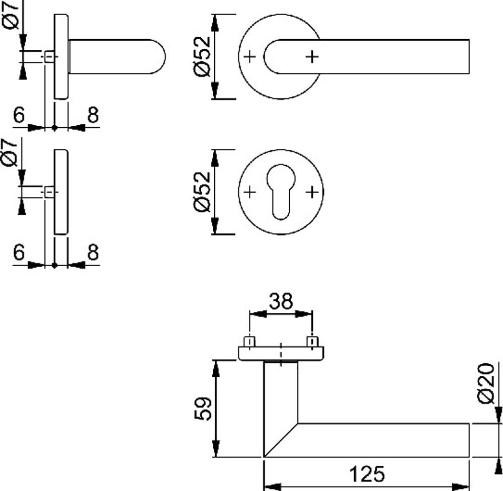 Rosettengarnitur Amsterdam E1400Z/42KV/42KVS Edelstahl F69 rund SK/OL DIN links / rechts D/D E1496856
