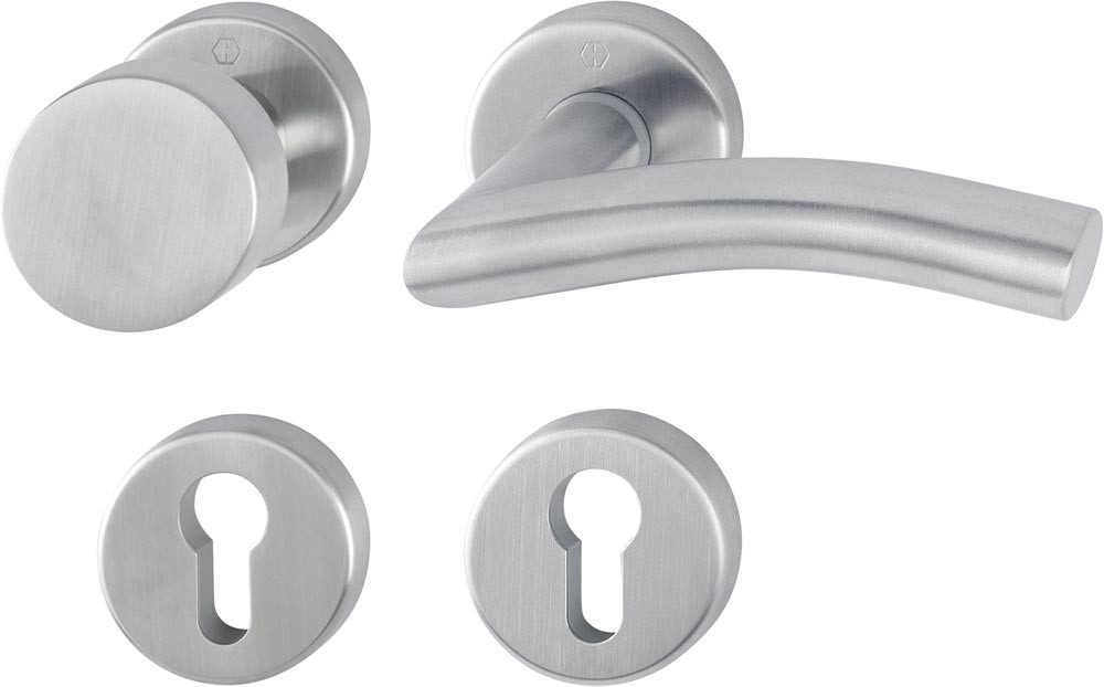 Rosettengarnitur Antwerpen E58/42KV/42KVS/1420Z Edelstahl F69 rund PZ DIN rechts flach D/K